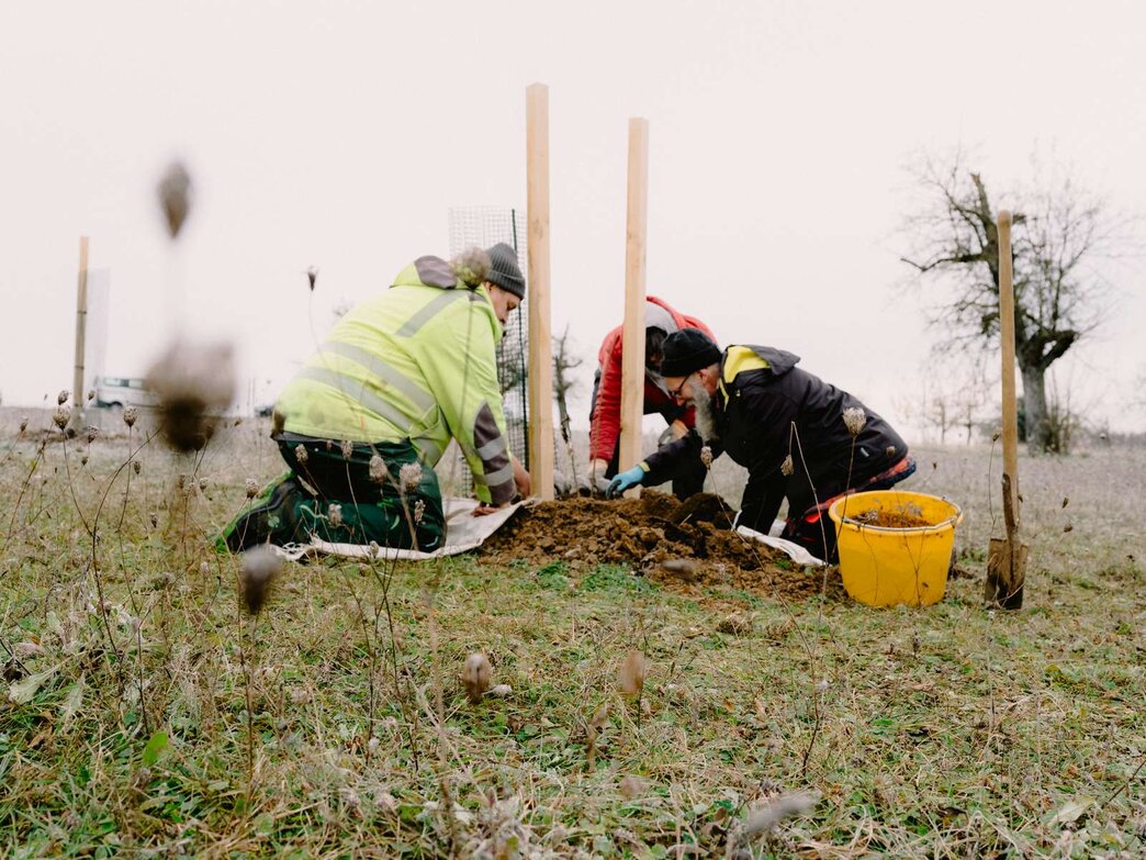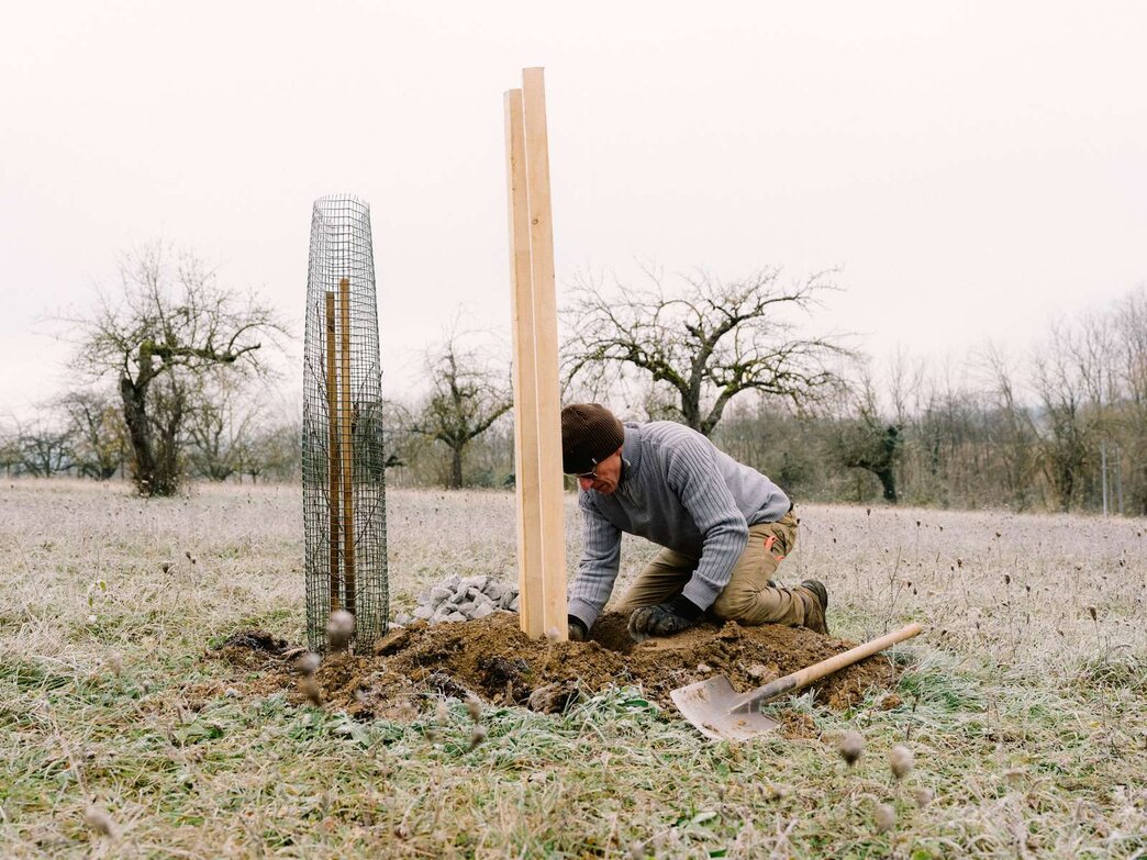 In diesem Projekt bei Bönnigheim (Landkreis Ludwigsburg) entsteht auf einer Fläche von 1,29 Hektar eine klimaresiliente Streuobstwiese mit alten, regionalen Obstsorten.